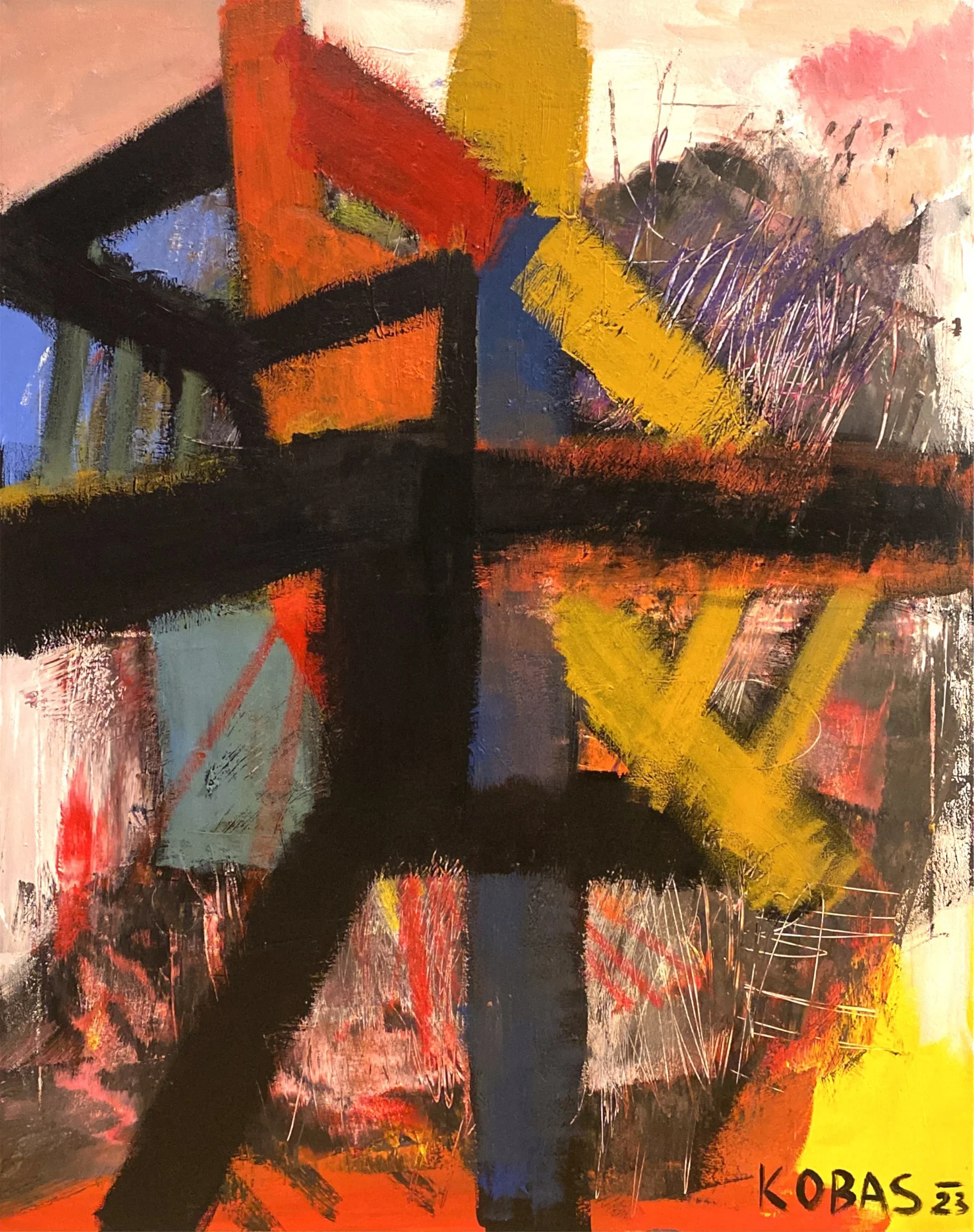 Mihael Kobas creates artwork that primarily explores abstract and expressive styles. His works often feature bold, dynamic compositions with vibrant colors and strong contrasts. He employs a mix of geometric shapes and freeform brushstrokes, creating a sense of spontaneity and emotional intensity. His style bears resemblance to abstract expressionism and his art is characterized by its exploration of form, color, and movement. He lives and works in Klagenfurt, Austria.